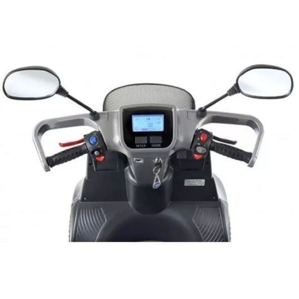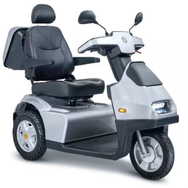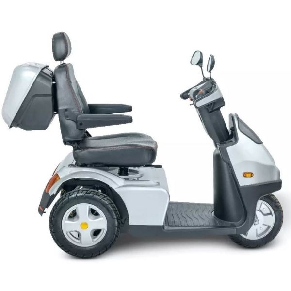 The Afiscooter S3 also has a luxurious orthopedic seat that’s fully adjustable. You can also adjust the armrests and headrest to give you the perfect seat. Even getting on and off the scooter is comfortable with a swivel seat and flip up armrests.