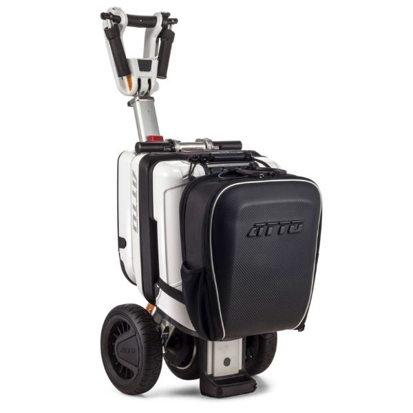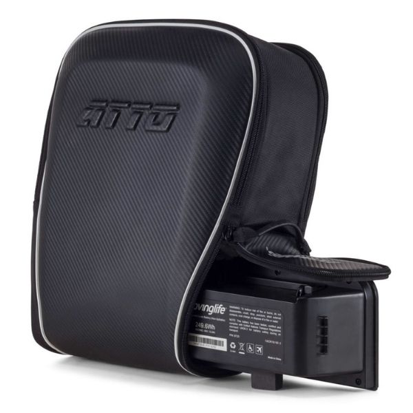 Enjoy a range of carrying options that are designed to make your day easier:Attach to front handlebars and leave open as a utility basketAttach to backrest for easy storage and transportCarry comfortably as a padded backpack with an ergonomic harnessRugged, semi-rigid protection your belongings and your laptopDedicated sleeve for laptop and tabletSpecial storage for spare ATTO battery with easy side accessMultiple compartments and organizers to carry everything you needSecret rear pocket for securing valuablesSpacious storage, designed to fit the ATTO Essentials Pouch inside when travellingBonus safety reflectors give you extra visibility