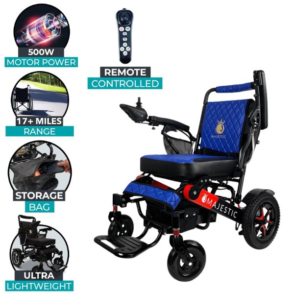 Are you searching for an affordable folding electric wheelchair that is lightweight and airline-approved? Look no further than the IQ-7000 Remote control Electric Wheelchair. This chair is one of the heavy-duty folding units that is capable of 350 lbs. with a seat size of 18" width.