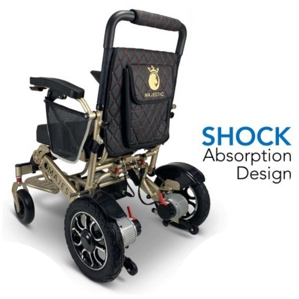 This foldable electric wheelchair is equipped with dual-engine and shock absorbers suspensions for a smoother and comfortable ride.