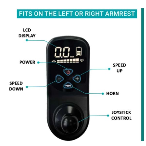 Operating the IQ-Carbon is simple thanks to its intuitive joystick control system. The 360-degree joystick allows precise steering, while the built-in LCD display shows clear speed and battery information. Designed for comfort and ease of use, the controls suit both first-time power chair users and experienced riders. Adjusting speed and direction feels natural and responsive, helping users stay confident on every ride.