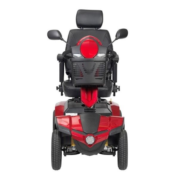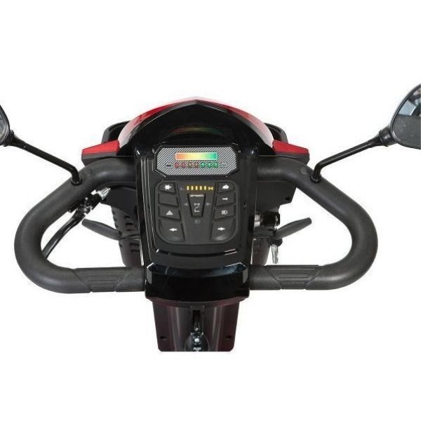 If you are looking for a heavy duty mobility scooter that offers a smooth ride and long battery range, look no further than the Drive Medical Panther 4 Wheel Mobility Scooter.  The Panther has a state-of-the-art, modern look that is guaranteed to turn heads when you are cruising around town.  It is very quite, offers a 4 wheel shock absorbing suspension, so transitioning to different types of terrain is a smooth experience.  It has a glossy red finish that gives it a sophisticated look.