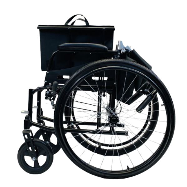 This heavy duty chair by Feather Mobility includes a foldable chair back that provides extra convenience when storing the chair or transporting it in a car. The chair back folds down easily, making it easy to store the chair in a small space. This feature is perfect for those who need a wheelchair that is both heavy-duty and easy to store or transport, providing maximum convenience for those on the go.