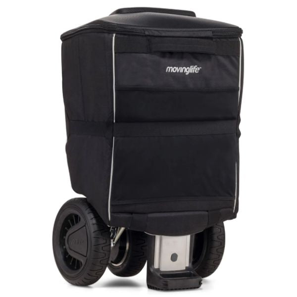 You can cover your scooter and roll it like a suitcase in trolley mode. When you're using your scooter, you can store the cover right on the backrest, so it's always ready.