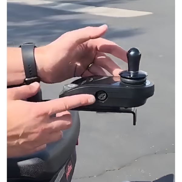 The Luggie Chair uses a joystick control system instead of a tiller, making it much easier for users with limited mobility or dexterity. With smooth, responsive handling, the joystick allows for precise navigation indoors and outdoors, all with the use of one hand. Whether maneuvering through tight hallways, crowded stores, or open sidewalks, the Luggie Chair delivers confident and stress-free driving.