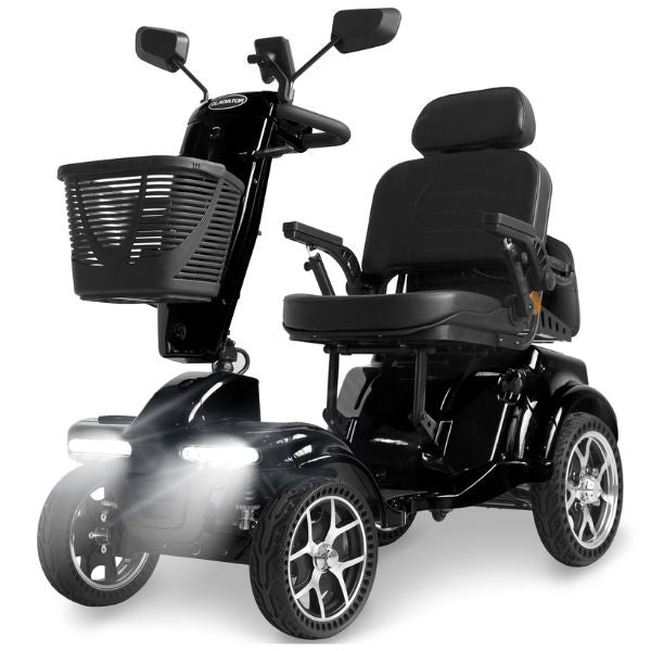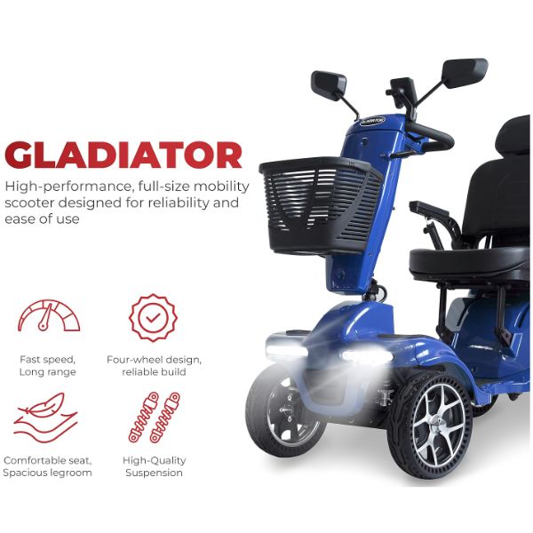 Are you looking for a strong and reliable 4-wheel scooter that is heavier duty, can be disassembled for transport, and you have a few different seating options? Introducing the Gladiator 4-Wheel Full Size Mobility Scooter from Discover Your Mobility. It is a great choice that is built to have a comfort and have a stylish design to boot.