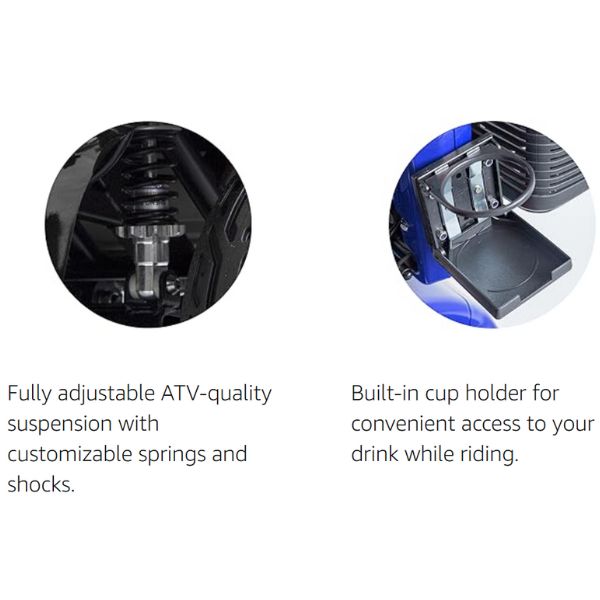 The fully adjustable ATV-quality suspension lets you customize your ride just the way you like it. With four adjustable springs and shocks, you can set the perfect balance of comfort and support for your ideal riding experience.