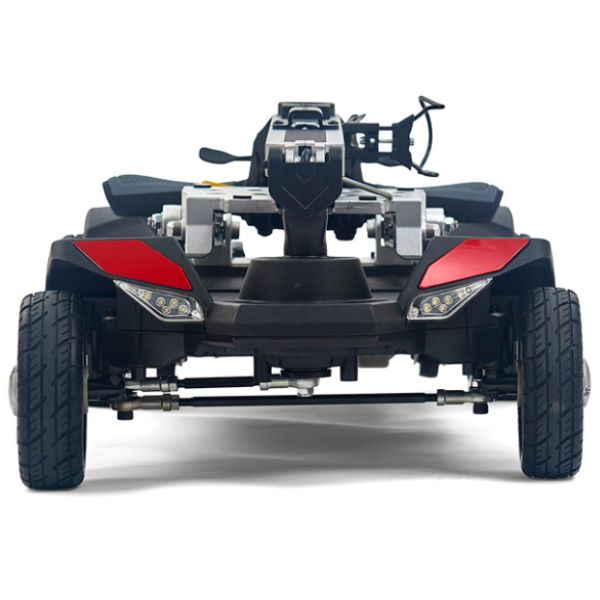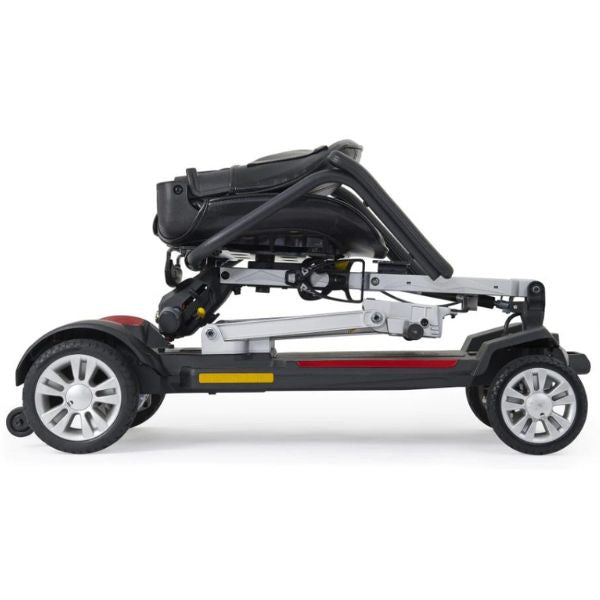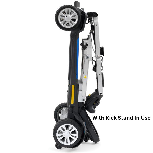 When storing or transporting this unit, it is best to remove the seat, which can be done in seconds. The seat weighs just 12 lbs and after it is removed, the rest of the unit weighs just 47.5 lbs! In addition to that, this foldable scooter can hold up to 300 lbs, has an 18 mile battery range, and offers an impressive 4" ground clearance; something that's not normally found in a compact mobility scooter of this size.