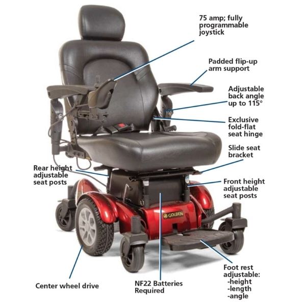 Like the standard Golden Compass, this unit features both front and rear adjustable seat posts and padded flip-up armrests. With the easy-to-use sliding seat bracket and a fully adjustable footplate, you can truly experience how this Golden power chair can transport you to places you never thought were possible!