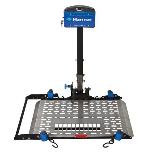 Are you looking for a lift designed for your RV? No need to worry, Electric Wheelchairs USA has got you covered! Introducing the Harmar AL300RV Lift. It helps you transport your mobility aid behind your RV so you can finally take everything you need with you where ever you go. Standard features include a drop hitch adapter (up to 26"), a manual crank backup in case of emergency, and a license plate mount.