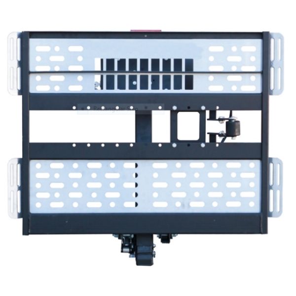 There is also a swing-away arm accessory, which provides easy access to the trunk or lift gate of any vehicle. When the deck is unloaded and in the folded position, the lift extends just 12" behind the bumper. Add just 2" more for the Swing-Away Option. Manual back up and a license mounting plate come standard with the AL570.