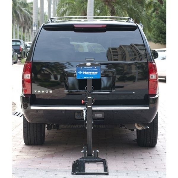 The AL580XL by Harmar is a bit larger to accommodate power wheelchairs with larger wheels. It is an license plate mount that features a padded arm to secure your power chair while you are transporting it. It also includes a manual crank backup & license plate mount. Another great benefit is that your power wheelchair does not require any modifications before placing it onto the lift.