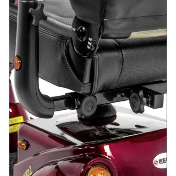 Looking for a mobility scooter with exceptional comfort? The Pioneer 3 has a luxurious high-back captain’s seat. This 20-inch seat swivels, slides, and reclines. It’s even contoured for the ultimate in riding comfort. And the headrest adjusts to offer the best neck support. To get a better view, or for added help getting on and off the scooter, upgrade to an elevating seat.