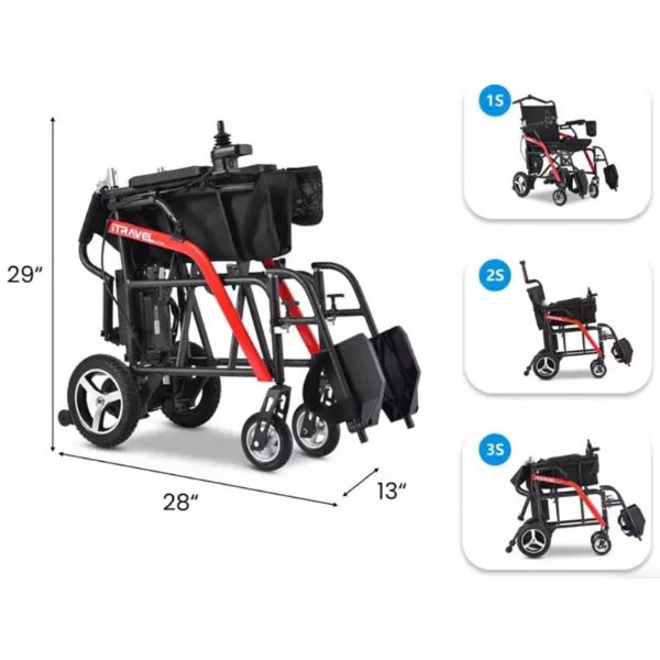 The iTravel Lite is a great option if you are looking for a compact, folding electric wheelchair that is not cumbersome to lift. It also folds up quickly and conveniently for storage or traveling, fitting in most automobile trunks with ease. Its layout is intended for users that prioritize mobility and simplicity of use.