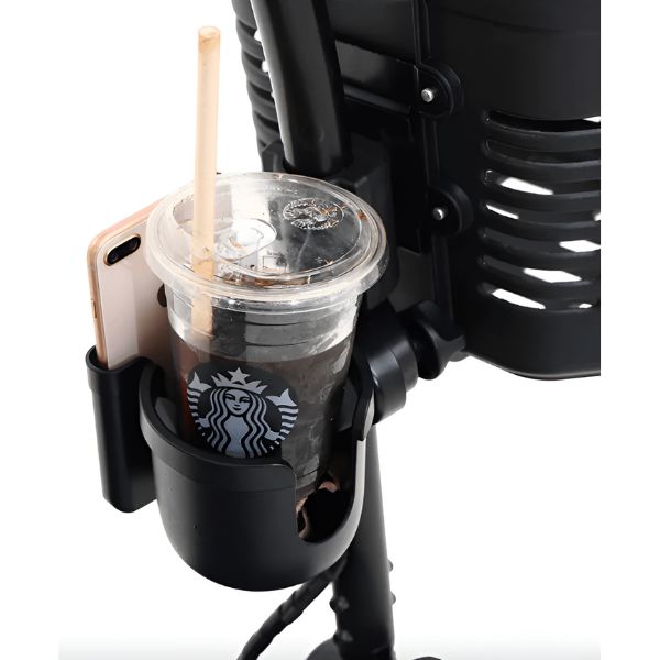 This small attachment significantly enhances efficiency while traveling. Thanks to its lightweight design, the Max Sport becomes an excellent option for those seeking to travel light. Equipped with a cup and phone holder, simply grab a bottle of drink and your phone, and you'll be ready to meet your friends! This accessory allows you to enjoy your favorite beverages and use your phone at the same time while on the go.
