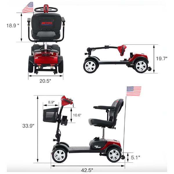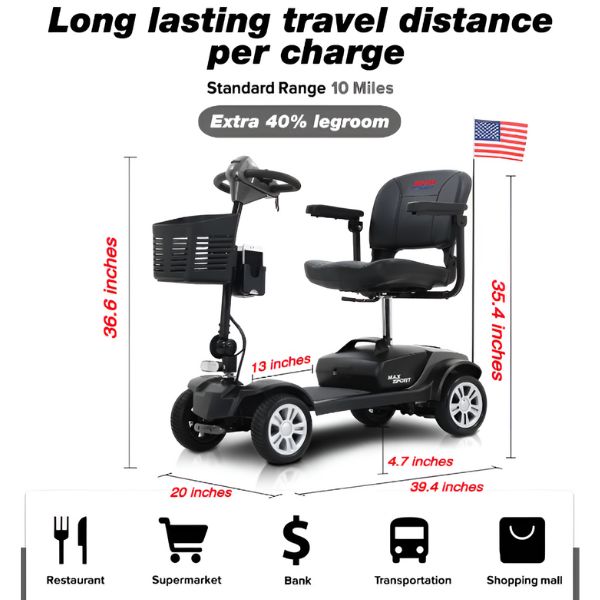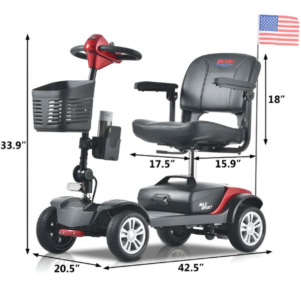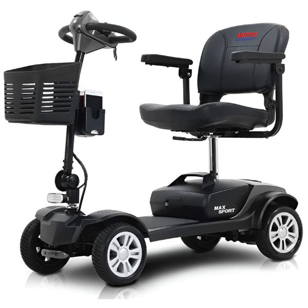 Are you looking for a mobility scooter that is both portable and reasonably priced? The Max Sport 4-Wheel Mobility Scooter from Metro Mobility is one scooter that is a great option for someone on a budget. It can support up to 300 pounds in weight, move at a maximum speed of 5 mph, and cover up to 10 miles on a single battery charge. For someone who needs to restore their mobility, this is a practical mobility solution.