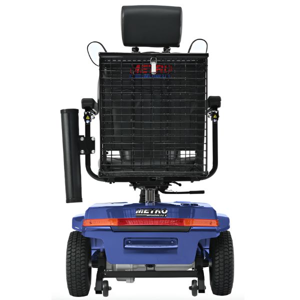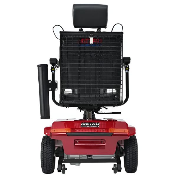 The Metro Mobility S500 mobility scooter offers a comfortable and supportive experience for riders, especially during long journeys, with its padded seat and headrest.