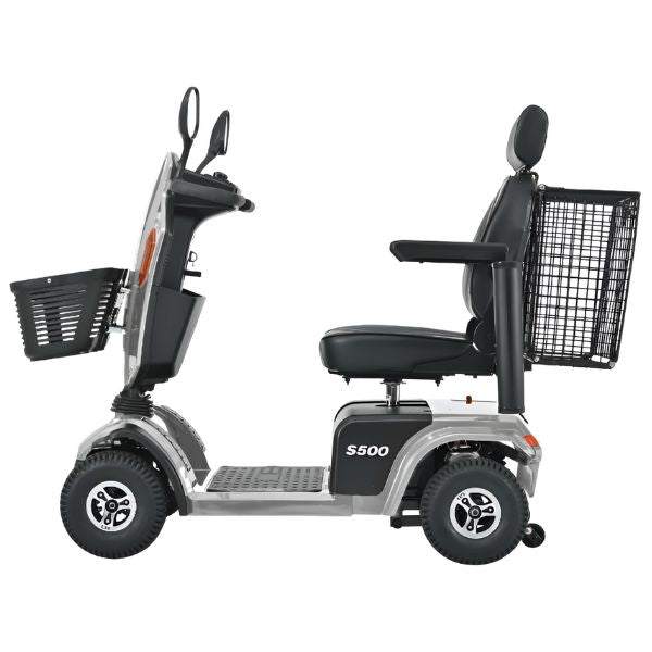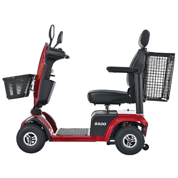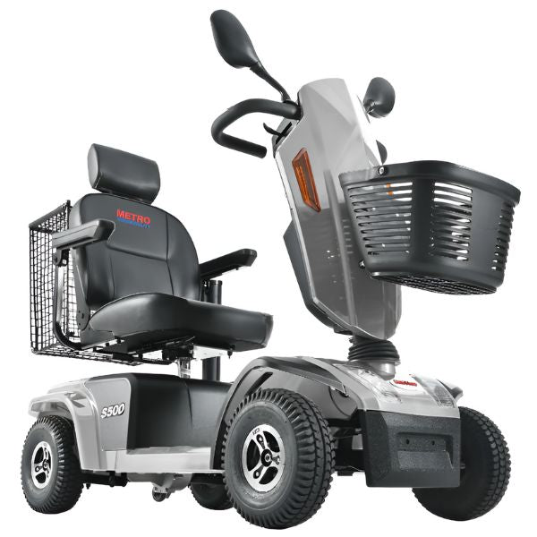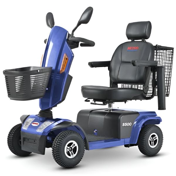 Do you long for a mobility scooter that is tough, comfortable, offers a long battery range and a rear suspension for added comfort? How about one with large air filled tires and lots of storage? Well, you have found the perfect solution to meet all of those needs plus more! Introducing the S500 full size mobility scooter by Metro Mobility.