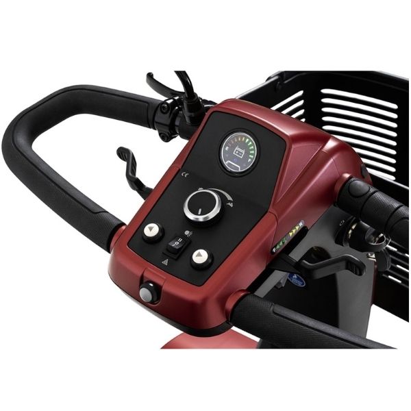 This luxury mobility scooter does not lack power and performance. With its super quiet, yet heavy duty drive train, the Maxima offers one of the smoothest and quietest rides on the market today. In addition to the Group 22NF batteries, which offer a long battery range of 18 miles, this 3 wheel scooter also comes with think 10" tires that can handle varied terrain with ease.