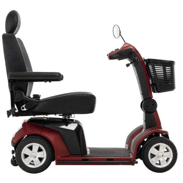 This 4 wheel mobility scooter has a very comfortable deep, cushioned seat that is 22" wide to accommodate just about any user. There are also wider seating options available. The seat also swivels all the way around and can be adjusted up or down as well. It comes with flip up armrests for easy entry or exit of the unit. Additionally, the armrests can be adjusted outward to creating a more comfortable seating area for the user.
