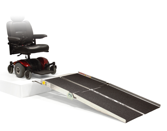 The Multifold Reach Ramp is extremely sturdy thanks to its durable welded design, resulting in a weight capacity of 800 lbs.* But with the Multifold Reach Ramp, you do not have to choose between strength and portability -- it breaks into two pieces so that you can carry it just about anywhere like a suitcase! The anti-slip, high traction surface completes the ramp, providing increased safety and peace of mind for the user.
