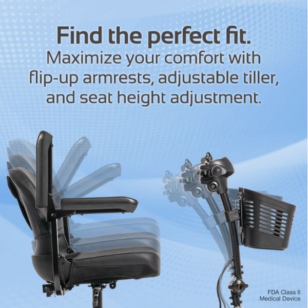Why settle for stiff, fixed seating when your scooter can adjust to you? This 4-wheel electric scooter puts comfort first with adjustable seat height, armrest width, and a tilting tiller that places everything where you need it. Whether you're out for a short ride or using it daily, you’ll feel the difference in posture, support, and ease. The swivel seat adds convenience, helping you get on and off without twisting or straining. It’s your ride—make it feel like it was built for you.