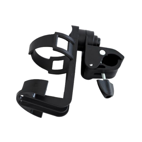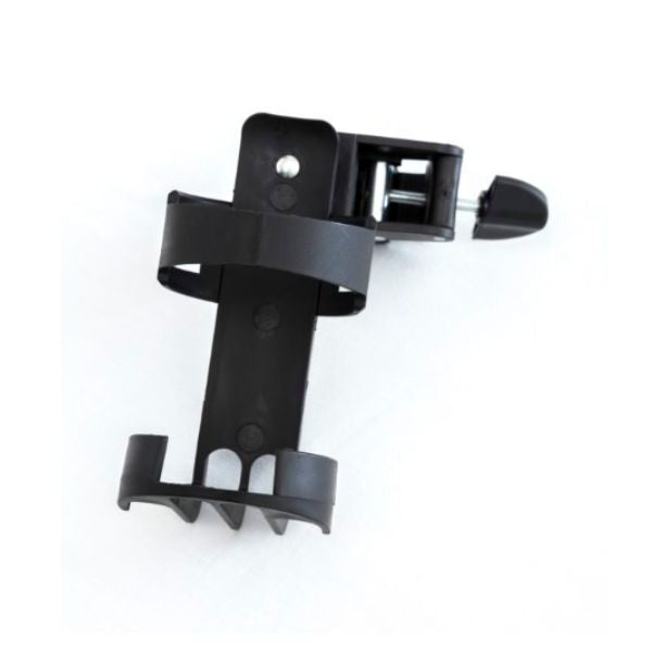 Upgrade your riding experience with our versatile black plastic cup holder, designed to seamlessly attach to both horizontal handlebars and vertical handlebar posts. This holder easily screws onto the bar and post, and the addition of foam pads ensures a secure and tight fit.