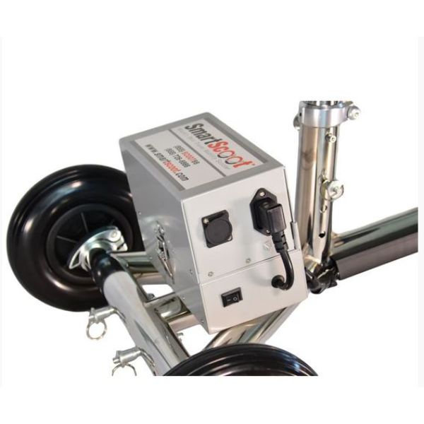 This scooter's frame, which is made of stainless steel, is sturdy and capable of supporting up to 300 lbs. The SmartScoot includes a collapsible front basket as well as a detachable luggage bar to handle your carry-on or briefcase as standard equipment.