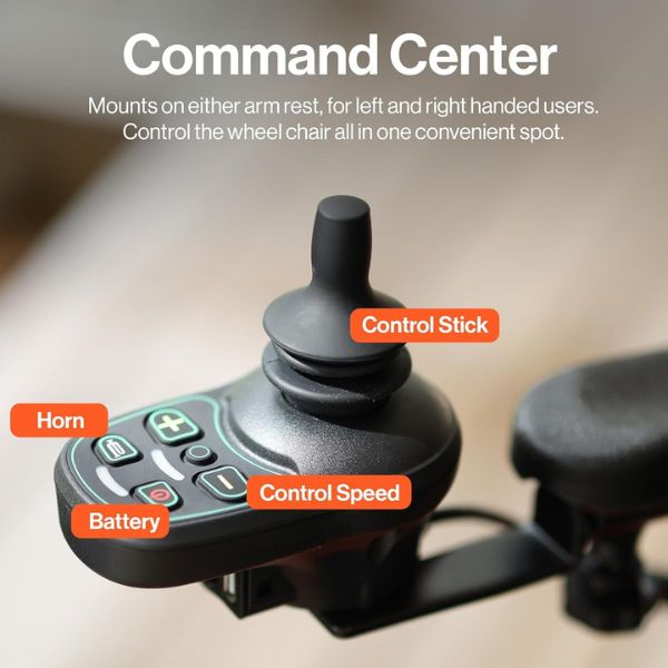 The 360° joystick is super simple and fun to control. With just a gentle push or pull, you can move forward, backward, or even spin around! It's perfect for getting through tight spots, like doorways or small spaces in your home. The joystick gives you full control over where you go, so you can steer your chair with ease.