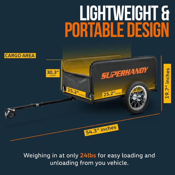 The SuperHandy Scooter Cargo Trailer is easy to use and store! It has a special foldable design, so you can fold it up when you’re not using it, saving you lots of space. And the best part? You don’t need any tools to fold or unfold it; just a few quick steps, and you’re good to go!