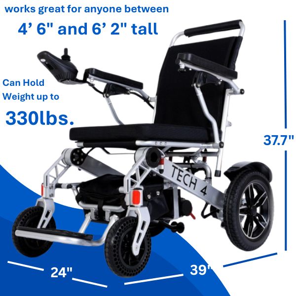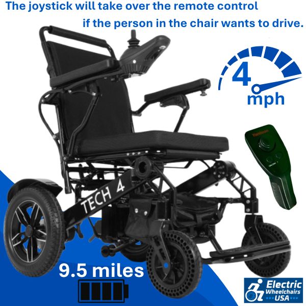 Looking for a reliable heavy-duty folding power wheelchair? How about one with a remote so you can control it without touching the joystick? Check out the Tech 4 Remote Control Folding Power Wheelchair by Discover Your Mobility. It’s made from strong airplane-grade aluminum and weighs only 60 lbs., but can carry up to 330 pounds of user weight.
